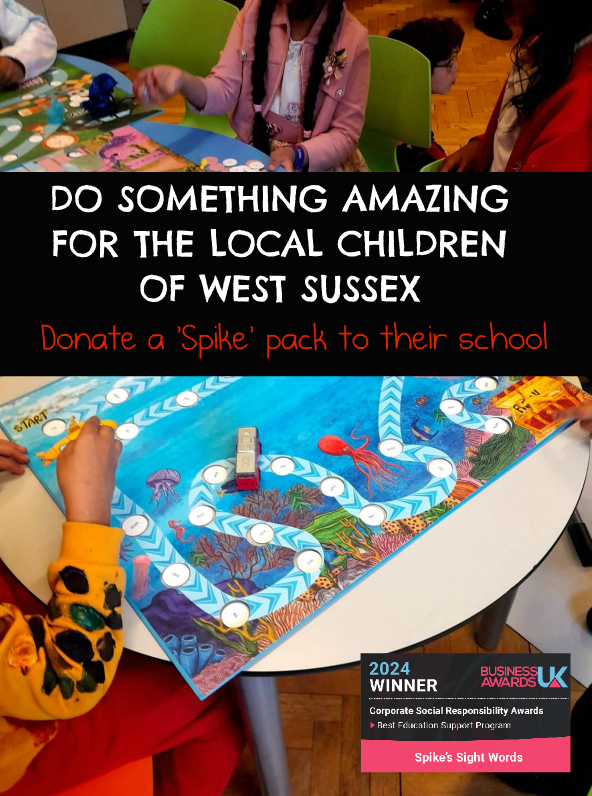 In a few weeks it is Dyslexia Awareness Week. Spike’s Sight Words are a series of award-winning educational board games that help children (especially those with dyslexia and those struggling to read) with their reading and spelling. We are already used in schools across the UK but to celebrate Dyslexia Awareness Week, we are asking all local businesses in West Sussex to help a child and donate a pack to a school.