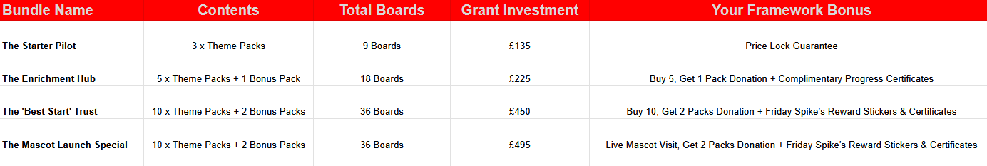 1. To help your school hit the ground running this Autumn, we are now opening our Priority Reservation List for the September national rollout. By reserving your enrichment boards today, you ensure your school is front-of-the-queue for our upcoming May production run, effectively “ring-fencing” your stock before the late-summer surge. There is no payment required now—this is simply a logistical safeguard that allows us to guarantee your delivery for September 1st, ensuring your students have high-quality, award-winning literacy resources from their very first day back. Secure your allocation now to lock in current framework pricing and avoid the risk of seasonal stock shortages.